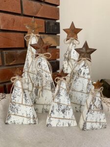 Participants will make 3 trees – 1 small, 1 med & 1 large. They can be decorated any way you want. Paint, twine & stars all will be provided.